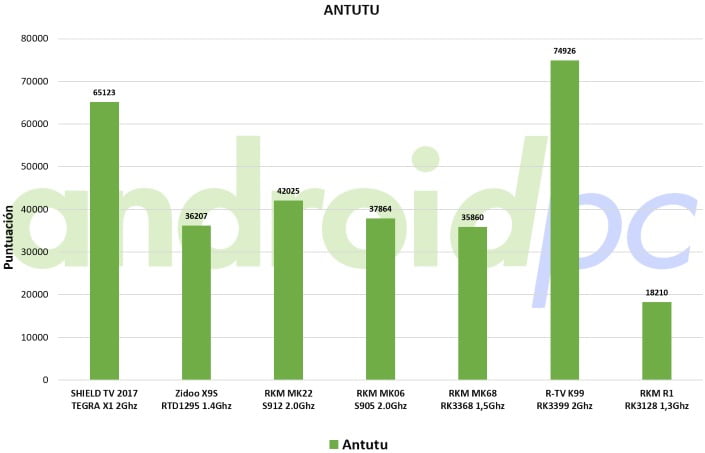 En cuanto al rendimiento el RKM R1 con SoC Rockchip RK3128 como podemos ver no es el modelo más potente del mercado, es un SoC algo antiguo que dispone de núcleos Cortex-A7 y una GPU Mali400MP2 que tiene ya unos años. En general el sistema se lo toma con calma a la hora de ejecutar las app pesadas pero por suerte es bastante estable y no hemos tenido problemas en su uso general, como vemos este hardware es para un uso básico o reproducción multimedia para contenidos a resolución máxima 1080p.