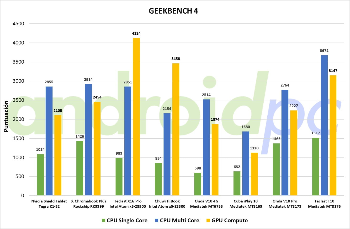Un nuevo referente en los test de pruebas para SoC que ofrece unas cifras bastante fiables de las CPU trabajando en un solo nucleo o con varios núcleos a la vez, también tiene un apartado de computación por GPU que nos da un resultado global de la capacidad de proceso