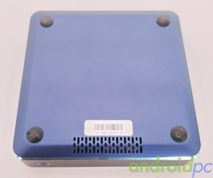 En la zona inferior tenemos cuatro patas de goma que elevan un poco la caja y ocultan los tornillos para desmontar esta tapa, tenemos también una serie de perforaciones como entrada de aire.