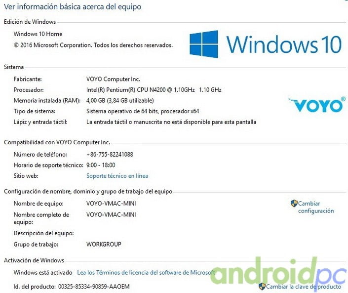 Ponemos en marcha el Voyo V1 como indican las especificaciones contamos con Windows 10 home 64bit correctamente activado, comprobamos las lista de dispositivos y observamos que ninguno se queda sin drivers. Si tenemos que reinstalar el sistema por cualquier motivo recomendamos leer nuestro manual de Instalación de drivers de forma sencilla.
