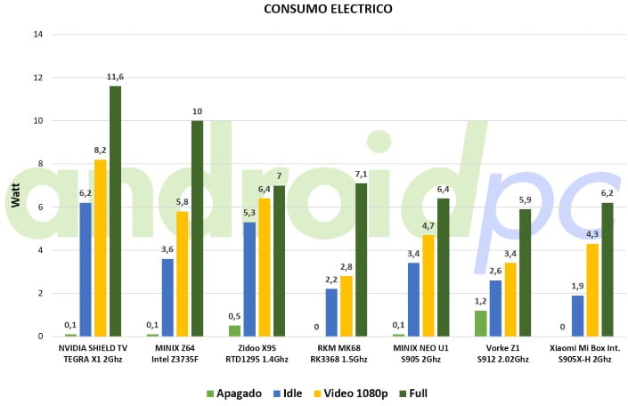 El consumo eléctrico del Xiaomi Mi Box International Version también es muy contenido como el resto de los TV-Box con SoC de la nueva gama S905X que hemos analizado. Las temperaturas muy bajas durante el uso normal el equipo apenas se calienta, un SoC muy optimizado en estos aspectos.