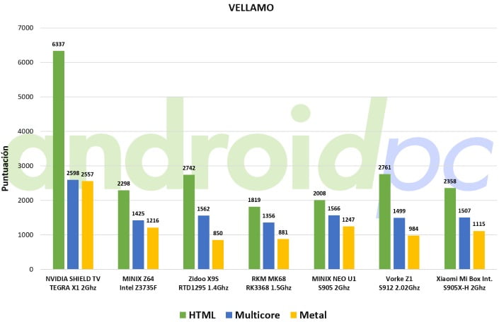 Este test nos da un valor del rendimiento del dispositivo sobre la navegación web (siempre usamos el navegador pre instalado) y el rendimiento bruto del SoC con una serie de test de calculo.