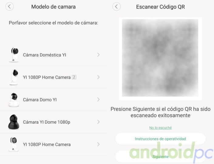 Conectamos con su cargador eléctrico y se pone en marcha automaticamente, después de unos segundos la cámara dirá por su altavoz «Esperando conectar». En el app seleccionamos el modelo Yi Dome Camera 1080p y le mostramos a la cámara un código QR, lo leerá en un segundo y se conectará a nuestra red Wifi. Un proceso como vemos bastante curioso y diferente al habitual pero que da buenos resultados.