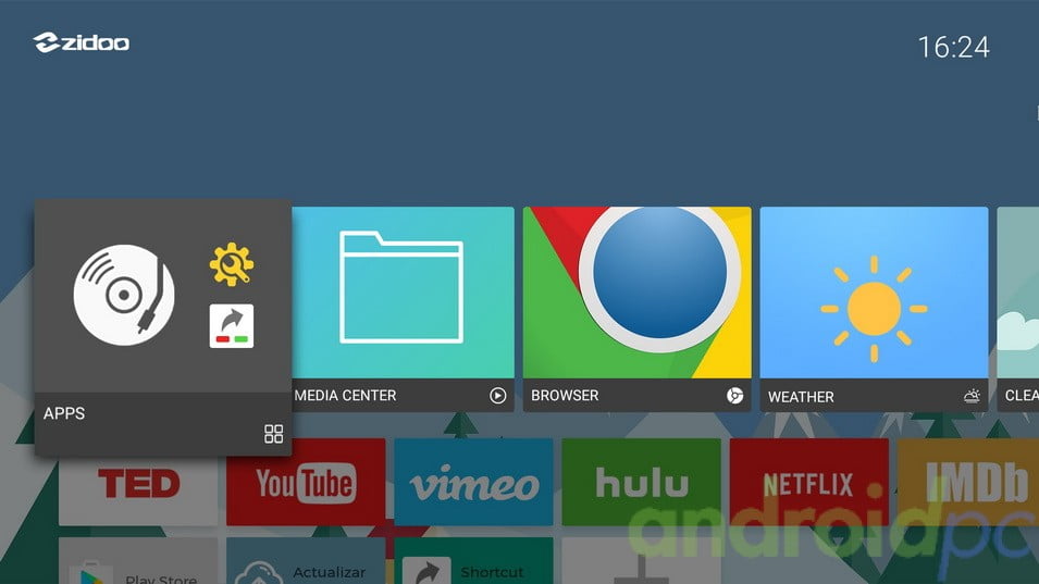 Conectamos a la corriente el ZIDOO X7 y el dispositivo se pone en marcha directamente iluminando el led frontal, en unos segundos aparece el logo de la marca y acto seguido tenemos el escritorio del sistema. Con este dispositivo ZIDOO nos presenta un nuevo launcher ZIUI Taurus que nos recuerda al de Android TV, tenemos una serie de accesos directos en cuadros donde podemos personalizar la última fila. Un launcher muy atractivo pero que no se lleva muy bien con los ratones, algo que seguramente optimicen en un futuro, igualmente podemos cambiar el launcher por defecto por el queramos sin problemas.