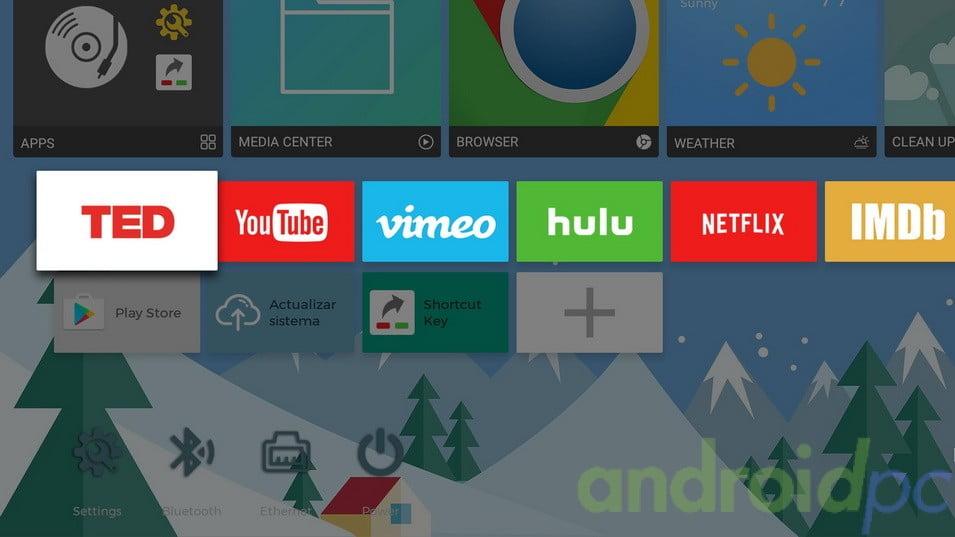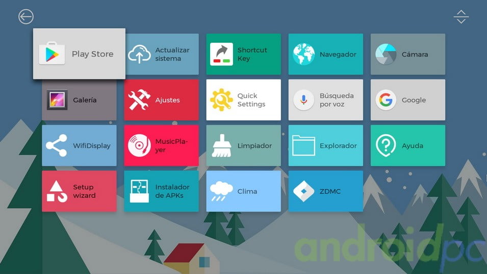 En la segunda fila de accesos directos tenemos una serie de aplicaciones que podemos instalar directamente sin necesidad de Google Play con lo que suponemos se instalan desde los servidores de ZIDOO. En la fila inferior a esta si pulsamos en el icono + podemos poner el acceso directo al app que queramos.
