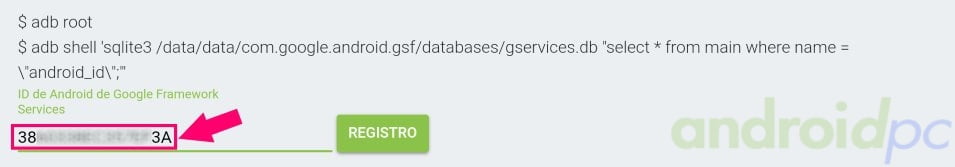 7. Nos aparecerá un numero «ID de Android registrado» debajo del campo donde hemos introducimos el código.