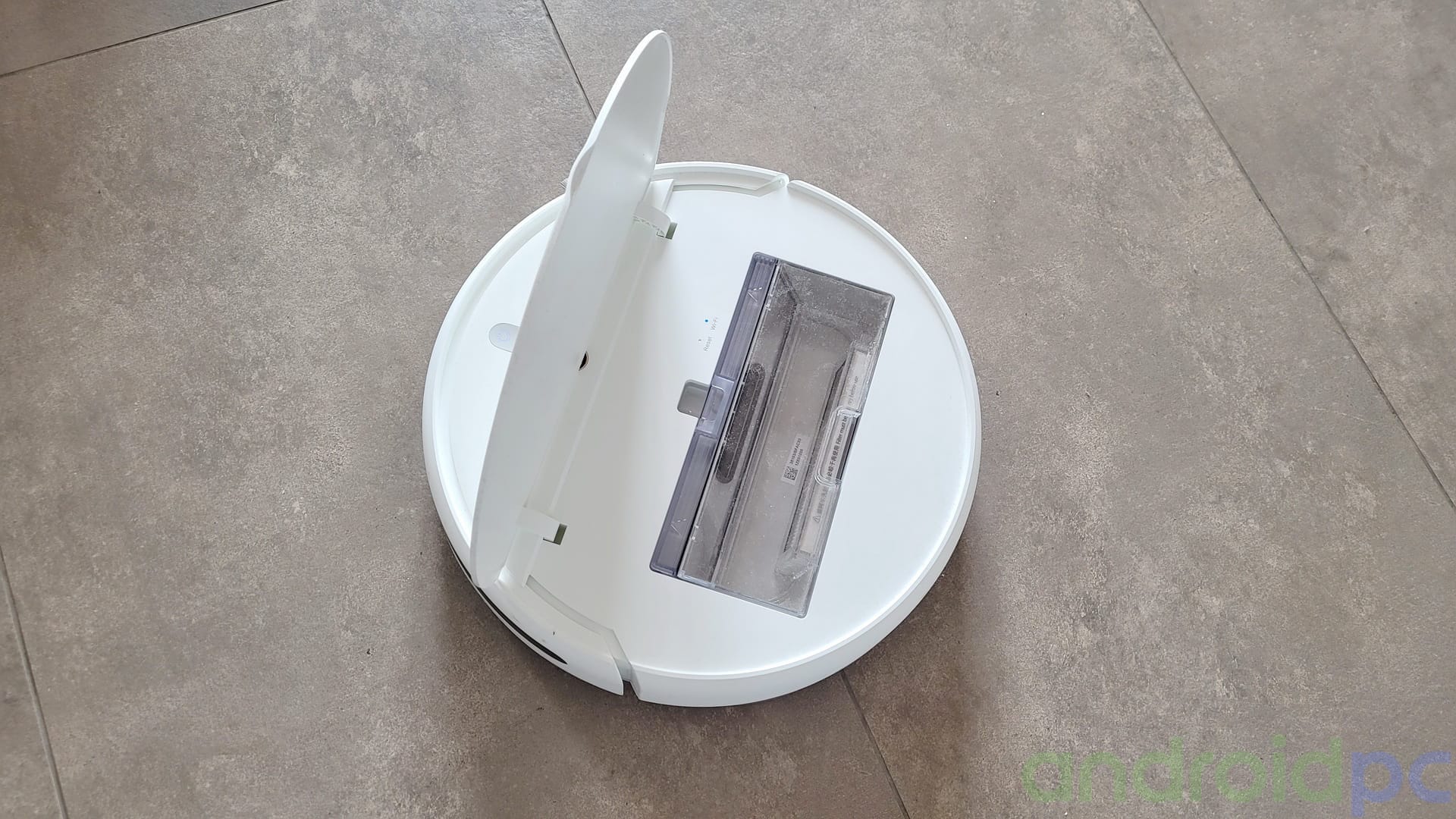 El Xiaomi Robot Vacuum Mop 2C cuenta con un diseño clásico con un discreto emisor superior para el sistema de mapeado VSLAM 2.0. Contamos con dos botones en la parte superior, uno para enviarlo a la base de carga y otro de arranque o apagado. En la zona superior al levantar la tapa del robot encontramos el sistema de depósito que podemos vaciar y limpiar sin problemas debajo del grifo si lo requiere.