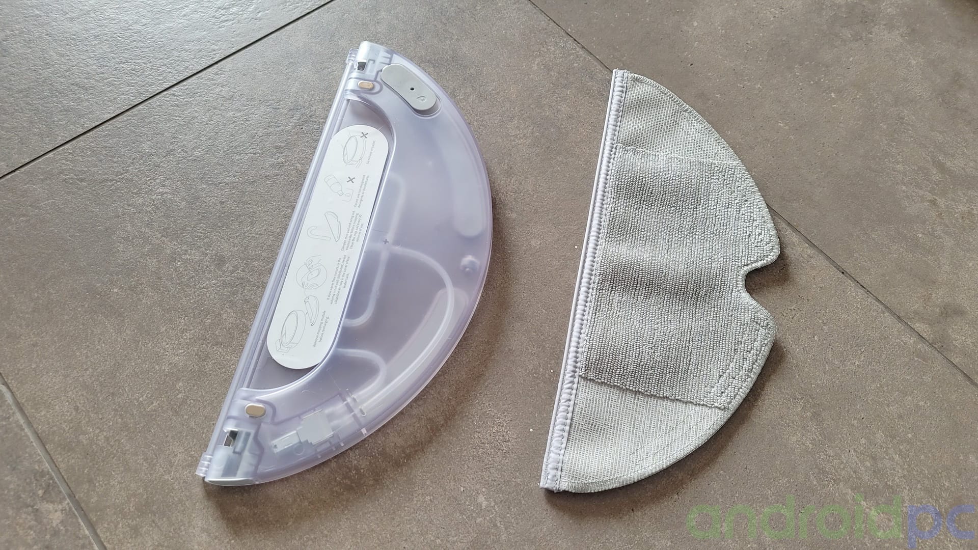 Como es habitual en este tipo de robots el depósito de fregado esta integrado en la propia bandeja que soporta la mopa, tiene una capacidad de 200 mly se rellena con el tapón de goma en su extremo. El sistema de fregado es convencional, contamos con una mopa que va arrastrando mojando la superficie, podemos elegir entre diferentes niveles de mojado y se recomienda mojar la mopa antes de montarla para trabajar para un rendimiento optimo.